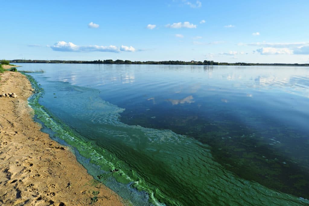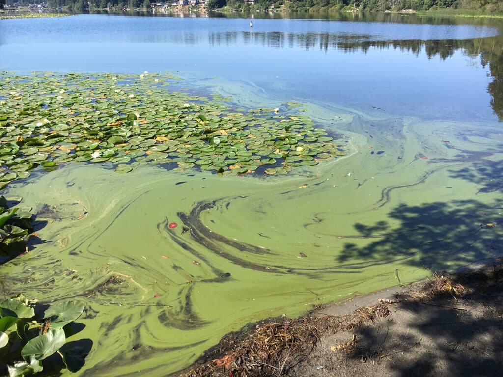 Blue green algae can be green, brown, or reddish purple looking in the water.
