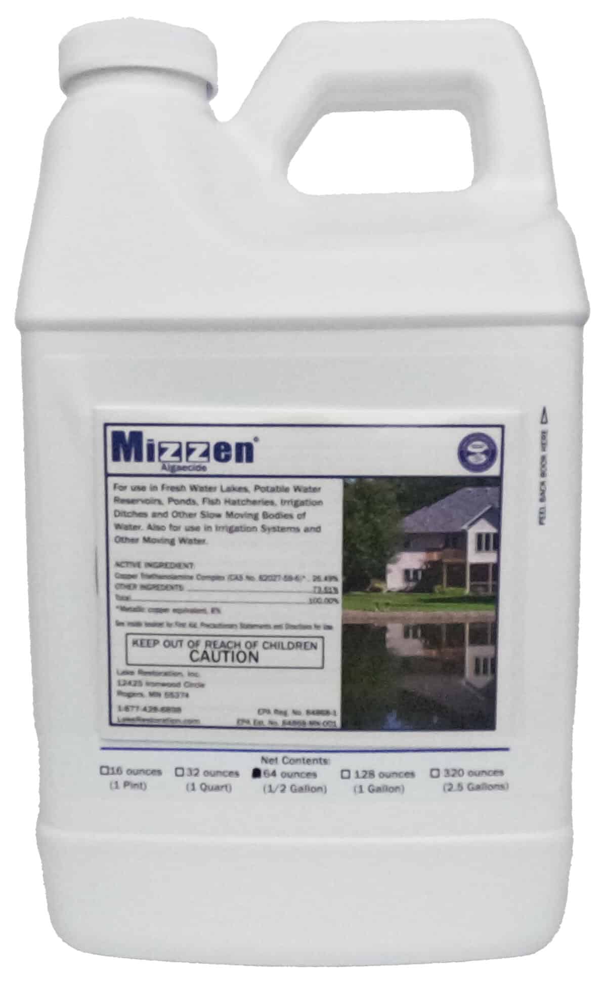 Our liquid, copper based algaecide, Mizzen, is designed to tackle your pond’s algae on contact. Mizzen will kill a wide variety of algae, with visible results in as little as a few days and complete results in 1-2 weeks.